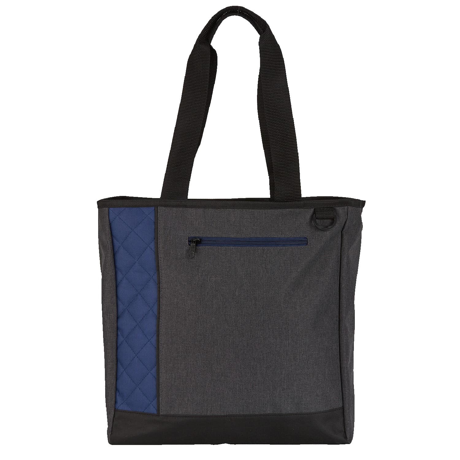 Constructed of 600D heathered polyester. Features a zippered closure main compartment & zippered front pocket. Features internal mesh pocket for holding bottles and contains plastic D-ring on right front for easy connections 22″ web handles. 13 3/4″ H x 13 1/2″ W x 4″ D