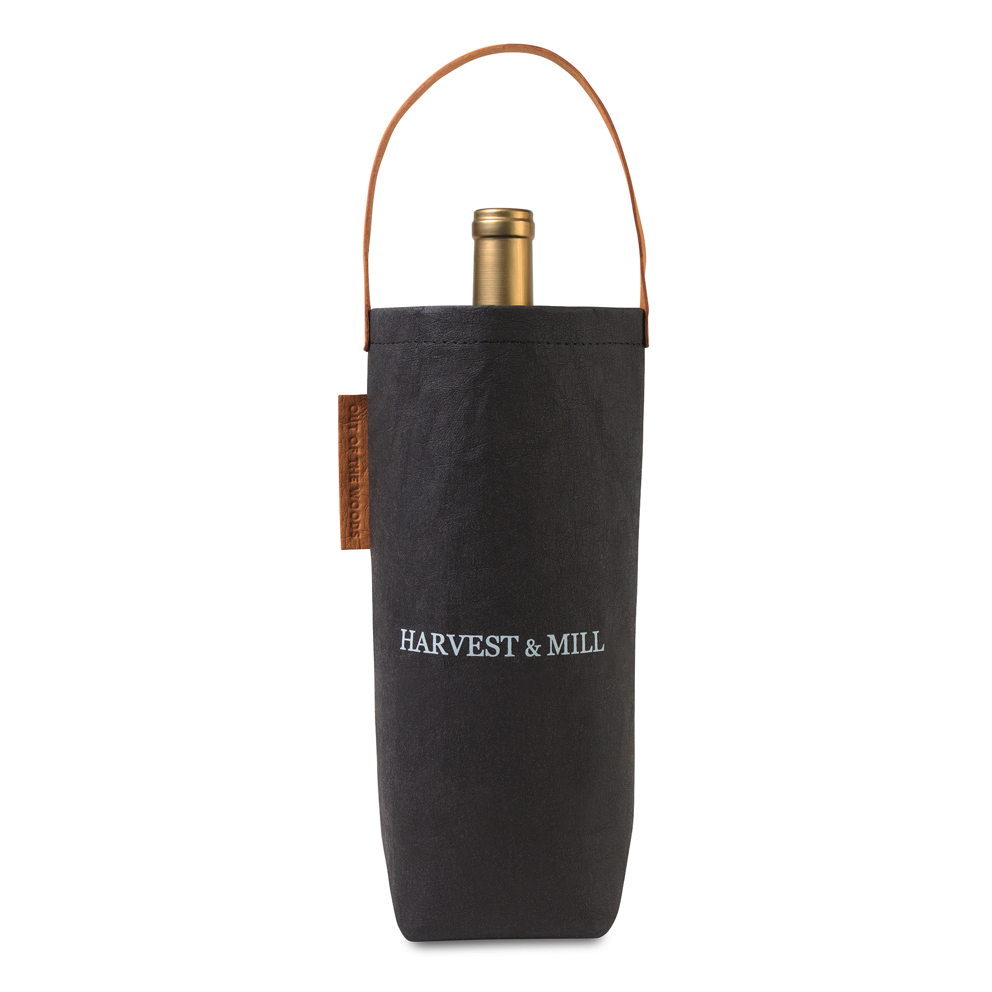 The Out of the Woods(R) Connoisseur Wine Tote is a sophisticated, reusable way to carry your favorite bottle. Made from FSC(R)-Certified washable paper crafted from interlocked wood fibers, it combines the rugged look of leather with lightweight durability. Perfect as a hostess gift or for wine lovers on the go, this tote fits most 750mL bottles and is washable for lasting use. Complies with CPSIA, Prop 65. 3.5″ W x 10.78″ H x 3.5″ L