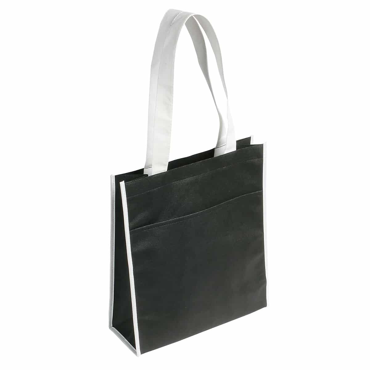 Peak Tote Bag with Pocket is a premium 80GSM non-woven polypropylene tote bag with a convenient front pocket, has 22″ reinforced handles and is a perfect reusable piece in your shopping needs. Complies with Prop 65. 12.5″ L x 4.5″ W x 13″ H